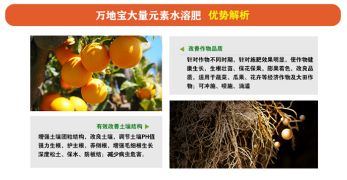 萬地寶大量元素水溶肥料采用磷酸二氫鉀或礦源黃腐酸鉀為原料,特別添加海藻酸與螯合微量元素,根據(jù)作物生長階段所需營養(yǎng)設(shè)計(jì)配方,適合多種施肥方式,省時省力。